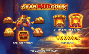 - キャッシュコレクター: 鉱夫のシンボルがゴールドシンボルを収集し、賞金として加算。