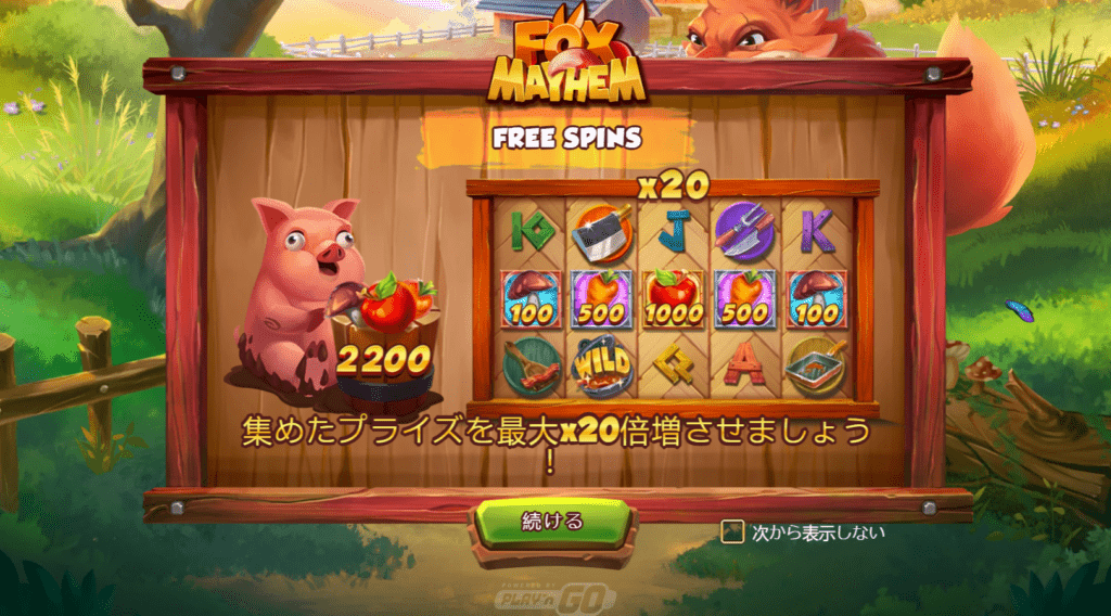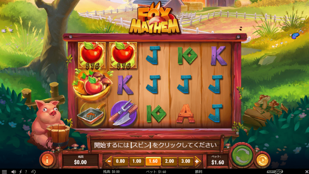 この農場の豚の数はそれほど印象的ではないように思えますが、持っている1匹は確かによく養われています。彼は農産物をがつがつと食べており、常に待ち伏せしているベーコンに飢えたキツネに全く無頓着です。正直なところ、このゲームの捕食者の役割には狼の方がより適していたでしょうが、ビジュアルの表現は魅力的でユーモラスです。これは明らかにハードコアなギャンブラーを対象としたゲームではなく、かなり普通の努力として映ります。Play’n Goは定期的にこのようなゲームをリリースしており、ベースゲームを中断する標準的なホールドアンドウィンスタイルの賞コレクション機能が提供されます。これはフリースピンラウンドでより頻繁にトリガーされ、最大で20倍まで増加する即座の賞金も付いてきます。4,000倍のポテンシャルはまあまあですが、「キツネ騒動」はすぐに平凡な地位に沈むでしょう。