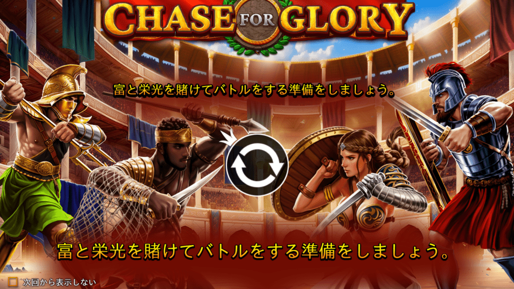 「チェイス フォー グローリー」は、古代ローマを舞台にした刺激的な剣闘士のテーマを持つWild Streak Gamingの新しいカジノスロットです。剣闘士のスロットをプレイする際には、ラッセル・クロウが演じる元ローマ将軍が家族を殺害した者たちへの復讐を求める、リドリー・スコット監督のアカデミー賞受賞映画『グラディエーター』を思い浮かべずにはいられません。このスロットでは、マルチプライヤーや役立つワイルドシンボルを持つあなたのチャンピオンを選択する刺激的なボーナスゲームが提供されます。剣闘士はその魅力的な歴史と全体的なクールなルックスから、スロットで人気のテーマです。『アクションブースト: 剣闘士』や『ゲーム・オブ・グラディエーターズ アップライジング』は、剣闘士のテーマを活用して刺激的なスロットを作る良い例です。さて、「チェイス フォー グローリー」が何を提供しているのか、見てみましょう!KOUN