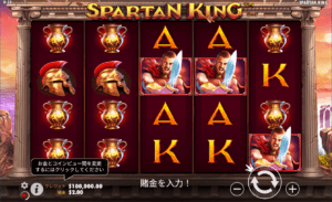 - 説明: スパルタンキングでは、巨大ワイルドシンボルが重要な役割を果たします。これらのシンボルはリールに2×2のワイルドとして現れ、大勝利のチャンスを大幅に増やします。